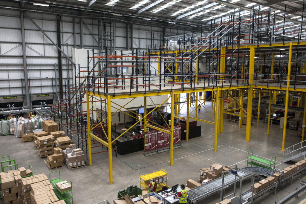 Once an order is received, the product is picked and then put onto a second conveyor system which takes the garments down to the 6m mezzanine to be packed.